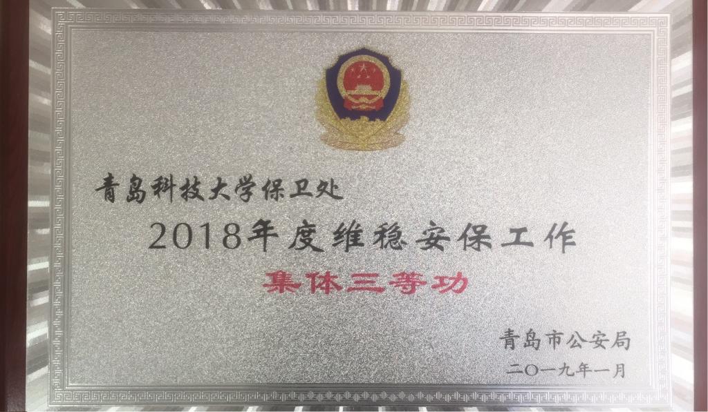 近日,青岛市公安局下发文件(青公通字[2019]2号),对2018年度全市高校文化单位先进保卫组织和先进个人进行表彰,学校保卫处荣立“2018年度维稳安保工作集体三等功”,保卫处单宝军同志荣记个人三等功一次,张波同志获个人嘉奖。