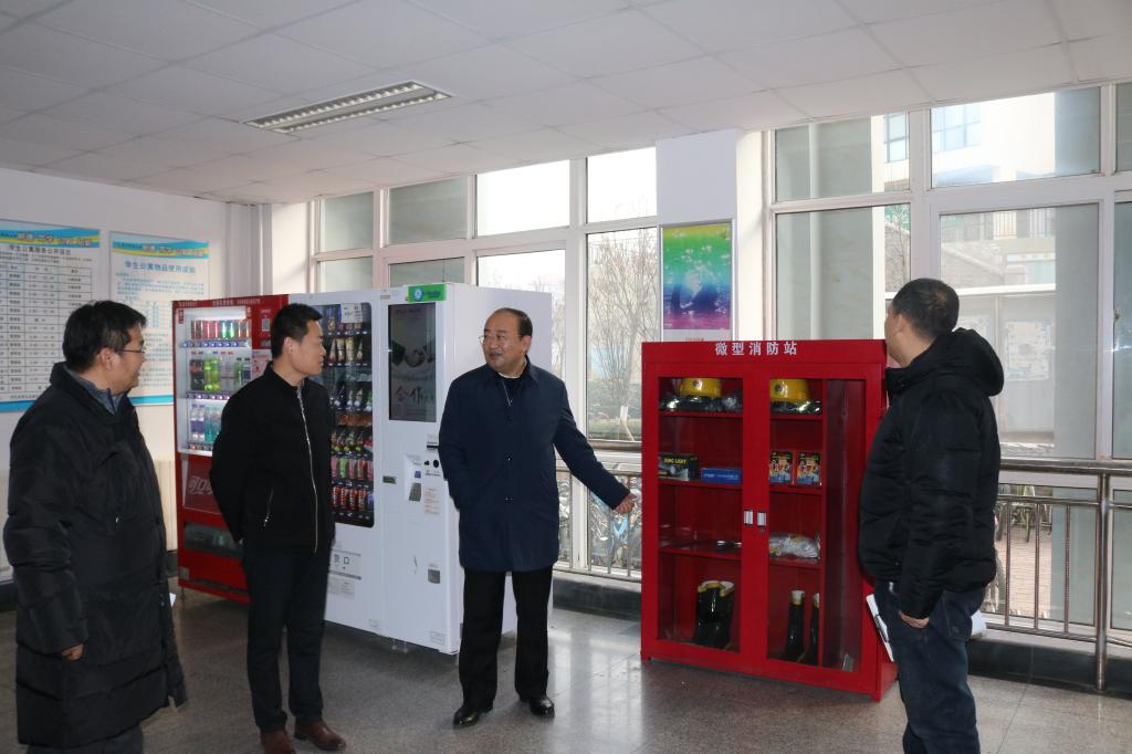 检查过程中,检查组重点查看了书库安全管理、消防设施设备、应急逃生通道、实验室安全管理、后勤饮食保障、学生便民服务、宿舍假期管理等内容,针对学校平安校园示范单位创建的实际和寒假期间学校安全管理的特点,李勇提出要求,一是要把学生人身安全放在首位,学校安全工作必须突出预防为主;二是要立足于服务师生,切实做好假期在校开展科研学习师生的服务保障工作;三是要把安全隐患整改作为重中之重,切实提升校园安全指数;四是要加强节假日值班制度,做好安全巡查,制定假期突发事件应急预案,确保安全稳妥处置。