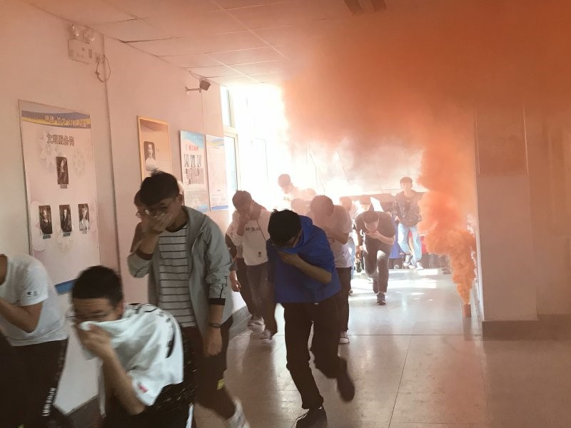 本次演练,由保卫处赵淑东老师亲自指挥,自动化学院领导及消防志愿者到场护航,确保每项工作安全有序地开展。演练前,赵淑东老师以简单易懂、幽默诙谐的方式对学生讲解了消防“四个能力”,宿舍中存在的各种人为隐患以及疏散演练的注意事项和纪律要求。下午2点45分,北区7号楼随着警报声响起,演练正式开始。在消防志愿者协会成员引导下,同学们弯着腰、用湿润毛巾或衣服遮住口鼻,按照指定疏散路线,快速撤离安全地带。